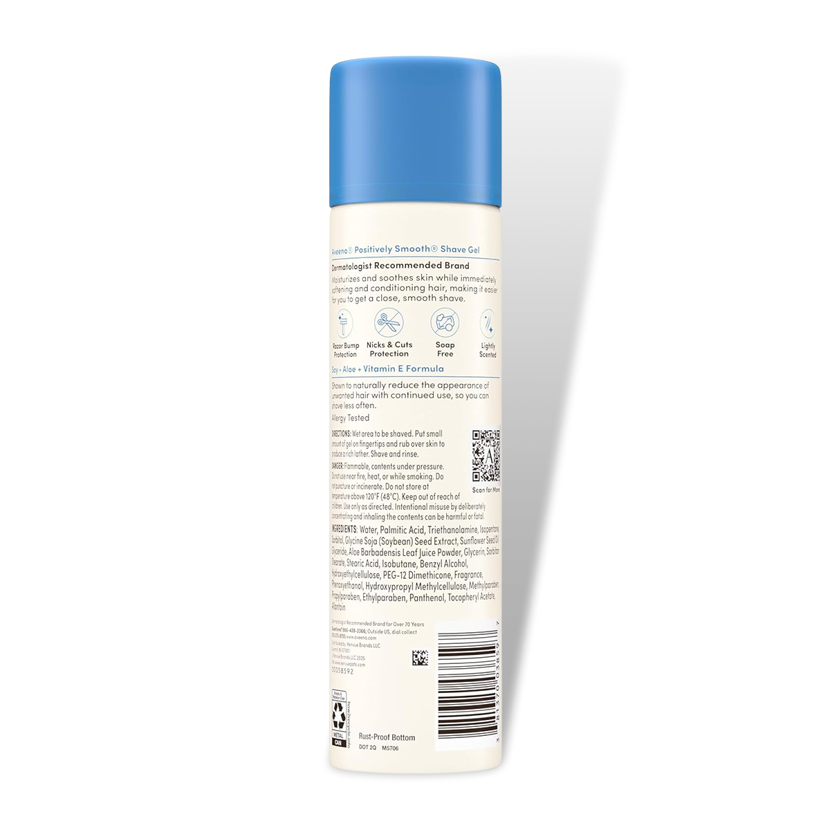 The key ingredients in Aveeno Positively Smooth® Shave Gel offer remarkable medical benefits. Soybean seed extract contains isoflavones and phytoestrogens that have been clinically shown to help reduce the rate of hair regrowth by affecting the hair follicle cycle. Aloe vera is renowned for its anti-inflammatory, antimicrobial, and wound-healing properties, making it excellent for preventing razor burn and soothing irritated skin. Vitamin E acts as a powerful antioxidant that protects skin cells from oxidative damage, promotes healing, and helps maintain skin elasticity. Panthenol (provitamin B5) penetrates the skin to provide deep hydration and improve the skin barrier function, while glycerin acts as a humectant to attract and retain moisture in the skin.