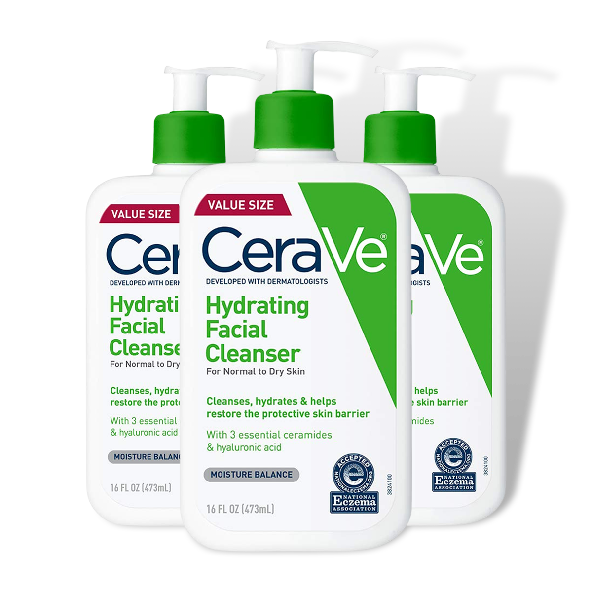 Discover the transformative power of dermatologist-developed skincare with CeraVe® Hydrating Facial Cleanser, a gentle non-foaming formula specifically formulated for normal to dry skin types. This innovative cleanser harnesses the power of 3 essential ceramides and hyaluronic acid to deliver a unique cleansing experience that goes beyond traditional face washes. Unlike harsh cleansers that strip away natural oils, this hydrating formula cleanses while simultaneously restoring and maintaining your skin’s protective barrier. With 473 mL of product in each value-size bottle, you receive a generous supply of this dermatologist-recommended cleanser that has earned recognition from the National Eczema Association.
